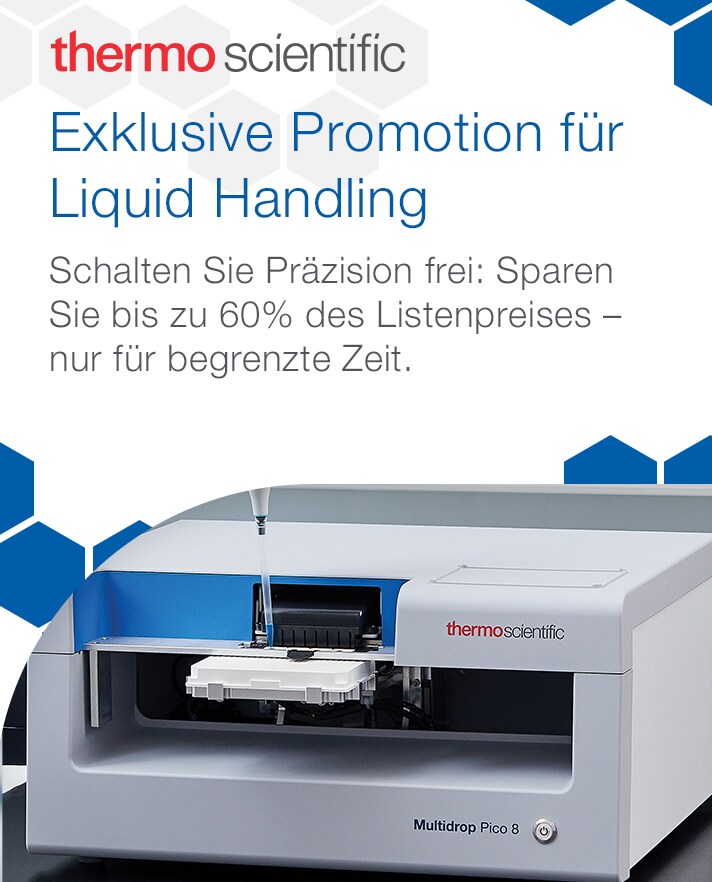 *Diese Aktion gilt nur für Kunden in Belgien, Dänemark, Deutschland, Finnland, Frankreich, Großbritannien, Irland, Italien, Norwegen, Österreich, Portugal, Schweden, Schweiz, Spanien und den Niederlanden (außer Nordirland). Das Angebot gilt nur für qualifizierte Bestellungen, die bei Thermo Fisher Scientific zwischen dem 01.07.2025 und dem 31.12.2025, 23:59 Uhr MESZ, eingehen, oder bis der Vorrat an Promo-Produkten aufgebraucht ist, je nachdem, was zuerst eintritt. Um den Rabatt in Anspruch nehmen zu können, müssen Kunden den oben angegebenen Aktionscode (24081) angeben. Dieser muss zum Zeitpunkt der Bestellung angegeben werden, um den Rabatt zu erhalten. Der Aktionscode kann mehr als einmal verwendet werden. Eine Liste der in Frage kommenden Produkte finden Sie auf dieser Seite. Das Angebot gilt nur für qualifizierte Produkte. Dieses Angebot kann nicht mit anderen Rabatten oder Werbeaktionen kombiniert werden. Das Angebot ist ungültig, wenn es durch Bundes-, Landes-, Provinz- oder lokale Gesetze oder Vorschriften oder durch die Richtlinien einer Behörde/Institution verboten, lizenziert oder eingeschränkt ist. Es können weitere Einschränkungen gelten. MBD (Oxoid)-Produkte sind in Irland und außerhalb der europäischen Länder nicht erhältlich.