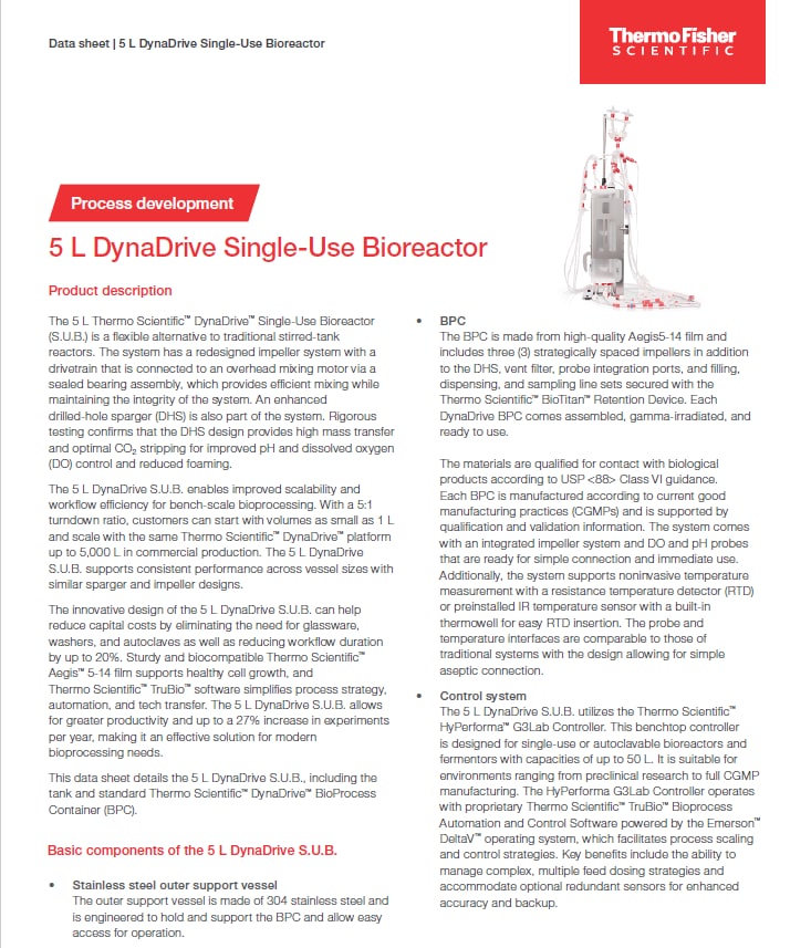 Why Choose the Thermo Scientific 5L DynaDrive Single-use Bioreactor?