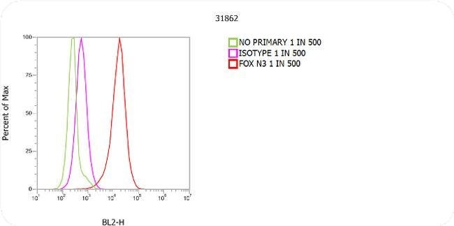 Concentration may vary slightly from lot-to-lot, see lot-specific datasheet for exact concentration. Product # 31862 has been successfully used in Western blot, IF, ICC, IHC, IP and FACS applications. Product # 31862 reacts with the heavy chains of mouse IgG1, but not with heavy chains of other mouse IgG subclasses or with light chains of most mouse immunoglobulins. This antibody does not react against mouse IgM, or against non-immunoglobulin serum proteins. The antibody has been tested by ELISA and/or solid-phase adsorbed to ensure minimal cross-reaction with human, bovine, and rabbit serum proteins. However, these antibodies may cross-react with immunoglobulins from other species. Phycobiliprotein Concentration: 0.5 mg/mL (determined by absorption = 82.0 at 566 nm for a 1% solution for only those R-PE molecules to which at least one molecule of active antibody is bound) Phycoerythrin Source: Seaweed Store product protected from light at 4°C until opened. To extend the shelf-life of this product, add an equal volume of glycerol to make a final concentration of approximately 50% glycerol and store at -20°C. RPE Amax= 490 nm, 545 nm, and 566 nm; Emax= 580 nm. Reconstitute with 0.5 mL of distilled water (0.5 mg/mL after restoration). Country of Origin: USA.